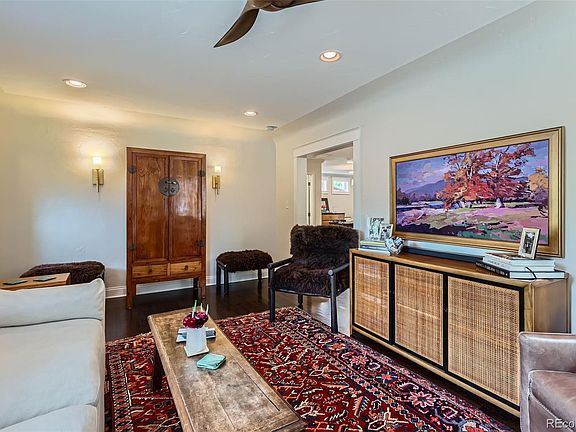 Tucked away on a quiet, tree-lined block in the highly sought-after Mayfair neighborhood, this elegant brick ranch blends classic charm with modern comfort. A bright, open floorplan welcomes you with rich hardwood floors, coved ceilings, and abundant natural light throughout. The inviting living room features a cozy, fully functioning wood-burning fireplace and flows seamlessly into a beautifully updated kitchen with high-end appliances, stylish finishes, and clear sightlines to the dining area where sliding glass doors open to a peaceful east-facing patio and landscaped yard. Perfect for effortless indoor-outdoor living. The main level offers a spacious secondary bedroom and full bath, plus a stunning primary suite with private patio access and a luxurious 5-piece en-suite bath. A newly added mudroom with built-in storage adds everyday convenience and organization. Downstairs, the fully finished basement dramatically expands your living space with two conforming bedrooms, a full bath, generous family room, dedicated laundry area, and ample storage. Notable features include: A functioning wood-burning fireplace, built-in storage throughout the home, including a newly added mudroom, Sonos-enabled built-in speakers inside and out at both patios, a tankless water heater, recessed lighting and ceiling fans, new plantation shutters throughout, a detached 2-car garage, bonus south-facing patio and lush landscaping—ideal for relaxing, entertaining, or gardening... All of this in one of Denver’s most cherished neighborhoods, known for its welcoming community feel. Walk to Mayfair Park and Plaza, and enjoy quick access to 9+CO, Trader Joe’s, Snooze, City Park, the Botanic Gardens, and downtown Denver. This move-in-ready Mayfair gem offers the rare combination of location, layout, and lifestyle.