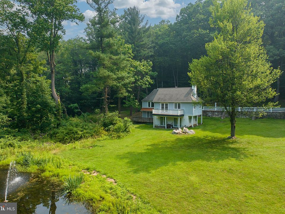 Welcome to this charming farmhouse with an expansive addition in Chester Springs! Located in West Vincent near the village of Birchrunville. The front entry opens to a sunlit kitchen with random width hardwood floors, granite countertops, an island with a breakfast bar, stainless steel appliances, expansive window with a window seat offering tranquil view of your own pond. Also off the entry is the spacious family room also with random width hardwood, vaulted ceiling, wood burning fireplace, and glass doors to the rear deck also with tranquil views of the property. The dining room with corner built-ins and window seat has plenty of room for entertaining. Upstairs you will find a cozy bedroom with built ins and a full bathroom. The lower level offers 2 large bedrooms, each with their own full bathrooms, as well as glass door access to the patio and deck overlooking the beautiful property. Completing the lower level is a laundry and bonus space for office or play room. The property is enhanced with a huge, detached garage with a lower level workshop. This home is in a great location with easy access to walking trails, shopping and route 100.