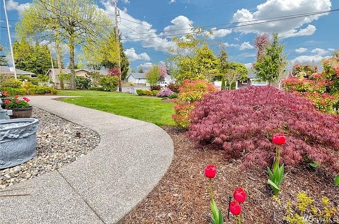 Quick access to Boeing Freeway, I-5, Blocks off Evergreen Way, established neighborhood. Tastefully remodeled w/Designer Flares. Modern Kitchen, Cozy FP, BIG Windows. Be transported to your own piece of paradise w/lush green lawns, palms trees, beautiful gardens. Great outdoor living spaces. Renter is responsible for all utilities.