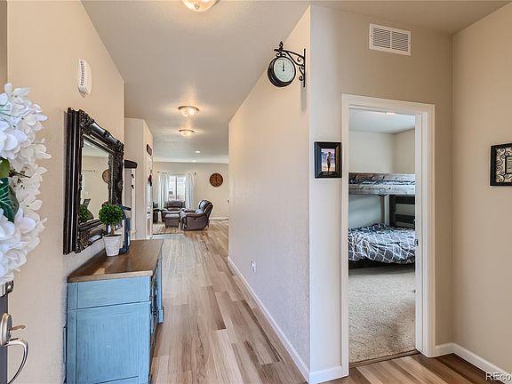 Impeccably maintained ranch-style home on a coveted corner lot in the highly sought-after Autumn Valley Ranch community with breathtaking views of Longs Peak from the front porch! Price has been dropped $10,000! This home features an open concept main living area perfect for everyday living and entertaining. The well-appointed kitchen features granite countertops, a large kitchen island with seating and a sink, and gleaming stainless steel appliances. The dining room features sliding glass doors that bring in abundant natural light and open up to a large and fully fenced-in back patio, great for indoor outdoor living. Enjoy outdoor gatherings and soak in the sunshine while taking in the lush lawn and surrounding greenery. The private primary bedroom is conveniently located at the back of the home and features an en-suite bath and a spacious walk-in closet. Two additional well-proportioned bedrooms and a full bath are situated at the front of the home, providing comfort and privacy for all. Completing the layout is a convenient laundry room and direct access to the attached 3-car garage, offering ample storage space and everyday convenience. Enjoy the smart thermostat which is controllable from your phone that offers ease and peace of mind! The Autumn Valley Ranch community has access to a lovely park and scenic trails to explore and enjoy. This beautiful home provides a tranquil retreat while still offering close proximity to shopping, dining, and more including a brand-new King Soopers shopping center 5 minutes away that is coming soon! New water heater in April of 2023, no Metro tax district!