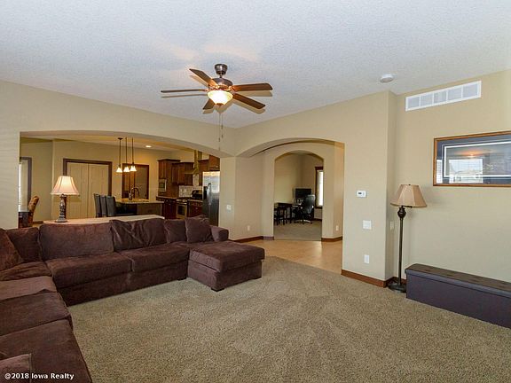 Beautifully designed home in Otter Creek. Golf course living with no private membership dues. Kimberley's award winning quality throughout. Welcoming front porch, open entry, wrought iron staircase railing, private powder bath, den or dining room, elegant arches, rich birch cabinetry/wdwk, stone FP built-ins, exec textured walls, granite throughout, center island kitchen SS appliances, new farmhouse sink, gas range/hood vent, tile backsplash, 1st floor laundry soaking sink & mudroom drop zone. Suite sophistication MBR has tile shower bath, dbl sinks & WI closet. Secondary BRs share a full hall bath twin vanity. DL LL has family/rec room 2nd FP & mini bar (beverage fridge incld, 3/4 bath, 4th bedroom (another ideal office option & 2 storage areas. Oversized triple garage, 1,048SF. Think Spring Soon to enjoy features: covered deck view of 3AC greenspace, 4' wrought iron fenced backyard, lawn irrigation. Enjoy quick I-35 access = minutes to Ames & Downtown DSM.