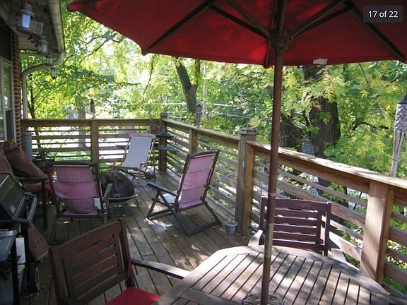 This spacious apartment has 9' ceilings, hardwood floors, big windows, a nice kitchen, sunroom, breakfast room, huge private deck, dining room AND is next to a park and on a cul de sac. AND it's a few blocks from downtown and Metra and CTA. Great location. Owner pays for trash, sewer and water. Tenant pays for gas and electricity. Free use of washer and dryer in basement.