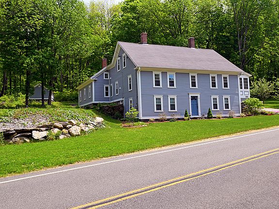 Oh my, the barns...nice house too. 1790 classic colonial lovingly restored structurally and cosmetically. Property consists of 2 parcels across the street from each other; 4.575 acres on east side with the magnificent 4 bed, 2 full bath house, and 4.848 on the west side with two barns, one 100 x 40, the other 49 x 26. Prepare to be startled. The house has had masterful restoration over past 6 years with new sills, siding, roofs, windows, bathrooms and kitchen, electric and much more. Signif add'l space yet available to finish as master suite wing, prof office space or expanded family room. Superbly insulated, recent septic system, beautiful gardens, patio and stone walls. The big barn is excellent work and storage space with one insulated and heated room, all used for high end restoration enterprise for many years. Smaller barn has been used for safe storage of classic cars. This home and barns were once the heart of a 200 acre dairy farm. Come see how they used to build quality.