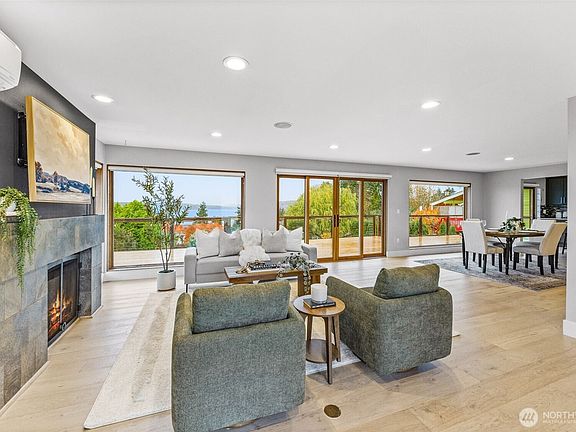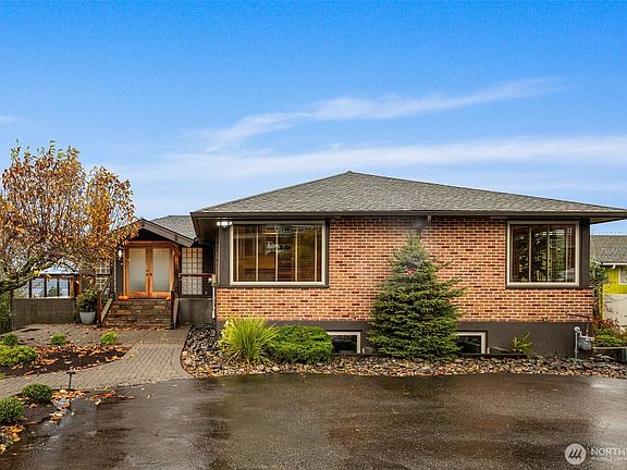 Chic mid-century modern VIEW home with panoramic views of Puget Sound, Day Island, Fox Island & Gig Harbor! This 4-bed, 2.5-bath, 3,000 sq ft home sits on a private ½-acre West Slope lot with tons of parking. There is definitely opportunity to build a detached garage in the future. Enjoy breathtaking sunsets from the expansive deck. Interior features include a gourmet kitchen, custom fir windows, mini split system with A/C, gas fireplace, and built-in speakers. Spacious primary suite with soaking tub and custom walk-in closet. Quiet dead-end road, no HOA on a quiet street! Great opportunity to live on the pristine West Slope!