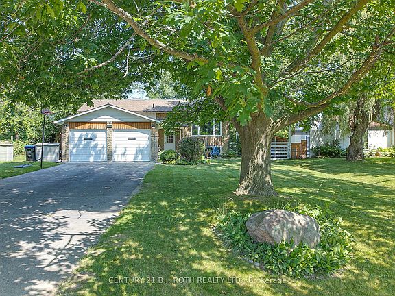 REDUCED! FAST CLOSING AVAILABLE! Lovely 3-bedroom raised bungalow close to Harbourview Golf Club and Gilford Marina. It is situated on the very private 80' x 151' lot. Large paved driveway has space for larger vehicles or RVs. The finished basement has an open-concept family room, a wood-burning fireplace insert, a wet bar, and large windows. The main floor has a walk-out to the fenced backyard and a spacious deck. The primary bedroom features a semi-ensuite bath. Hardwood floors are in the living room, dining room, hallways, and galley-style kitchen. Gas is on the street. InnPower Equal billing is only $338.00 per month (Hydro and water). Ask me about the Buyer's incentives. Connected to municipal water. Low taxes. Over 2200 Sf finished. It's a great family neighbourhood. Recent upgrades: Main floor windows 2008-2019, garden door 2013, new panels 200 amps breakers, garage with 100 amp breakers and 220V plug, fridge 2024, dishwasher 2021, basement sewer pump 2024.
