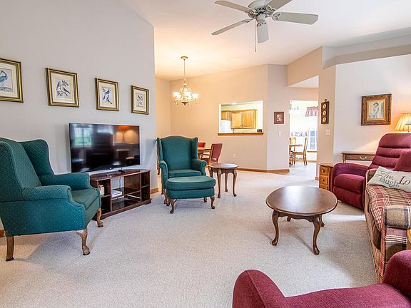 Great news! An affordable and beautiful side by side condo with a new furnace/AC last year! This well mantained condo offers 10' ceilings with an open concept end unit and sunroom/office opening to a deck to relax. Enjoy the gas FP on those cold winter nights! Do you need 2 separate dining areas for larger family gatherings for Thanksgving!?? This can be available to move in before Thanksgiving too! The garage is equipped with cabinets, a fan with built in heater and a new garage door opener. The floor in the garge has just been professonally cleaned 4 days ago! You will be amazed at the size of the primary suite wth walk-in-closet and large BA! All of this at an affordable price! This end unt has a private driveway. Pets are welcome! Plenty of walking areas! Come take a look!!