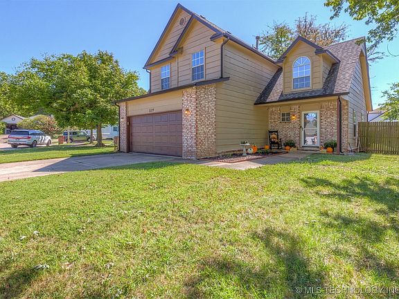 Location, Location, Location! This is the home you’ve been waiting for! Nestled in the heart of Jenks, just off 111th St between Elm & Elwood, this gem is perfectly positioned for convenience. Enjoy a quick 2-minute drive to the Neighborhood Walmart Market, and within 10 minutes, you’ll reach the new Jenks Outlets, Historic Jenks Ten District, and Tulsa Hills – offering shopping, restaurants, entertainment, Main Event, and a movie theatre.This spacious home features 3 bedrooms, each with its own walk-in closet, 2.5 bathrooms, and a cozy fireplace beneath soaring vaulted ceilings. With a 2-car garage and located on a peaceful cul-de-sac, you’ll appreciate the large yard filled with mature trees and the privacy provided by a fenced-in backyard.Situated in the sought-after Jenks School District, including Jenks West Elementary, Jenks West Intermediate, and Jenks High School, this property offers an incredible combination of location, curb appeal, and value. Seller will provide a one-year home warranty! This one won’t last long!