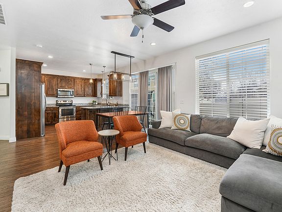 Like New Home in desirable Pleasant Grove neighborhood! Open concept floor plan. Upstairs opens to a loft area, grand master suite and two additional bedrooms. Upgrades include custom walnut cabinets, granite countertops, stainless steel appliances, laminate hard surface flooring throughout the main level, 12 ft long built in shelving unit in living room, smart garage door Ecobee thermostat just to name a few. Master bath features double vanity, separate tub and shower and large walk in closet. Fully fenced backyard with extended cement pad for entertaining. Great location! Easy access to schools, freeway, shopping, hiking/waterfalls and more!