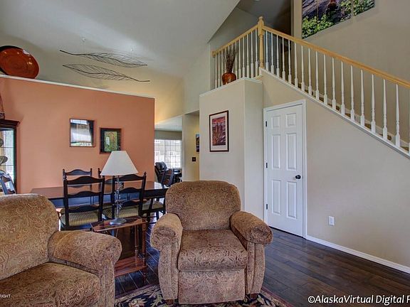 Great South Anchorage home with beautiful curb appeal and 5* energy rating. Home features vaulted ceilings throughout the living space and kitchen. Kitchen has all white cabinetry with stainless steel appliances open to the den with fire place. Spacious fully fenced back yard has a nice deck and patio area to enjoy the beautiful Alaskan weather.