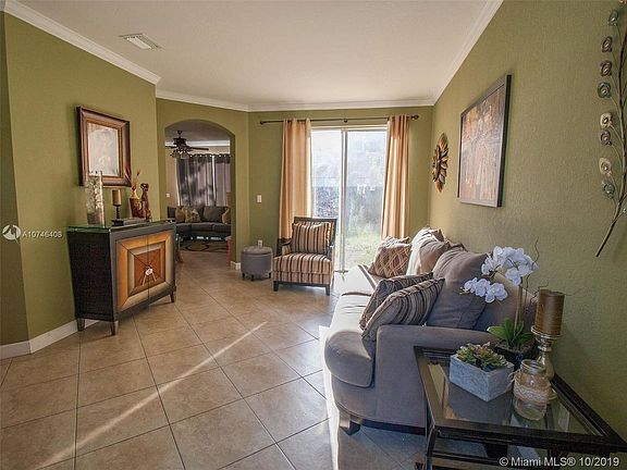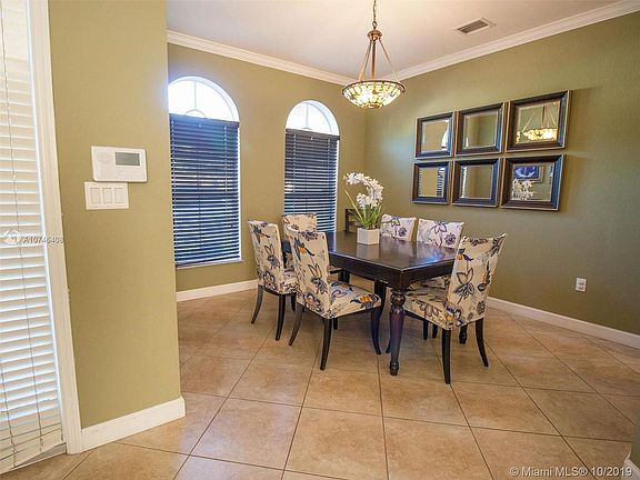 Live the good life! Perfect location in 'quiet' side of Kendall Breeze. Bright and sunny in all the right places. Impeccable maintenance. Enter to flexible living and dining space. Crown moulding in many areas! Open kitchen with recent appliances opens to family room and peaceful fenced backyard patio. Upstairs bedrooms. Double door entry to master suite with tray ceiling. Oversized walk-in closet and WOW bathroom with dual vanities and oversized tub. Separate shower. Full sized laundry machines in upstairs hall closet. Alarm + front lawn service incl. w/HOA fee.TWO community pools nearby, quiet green park at end of block and close to everything! Less than 1/2 mile to Publix, Walgreens, restaurants & banks. Starbucks 3 blocks away. Turnpike close too! Do not miss this one!