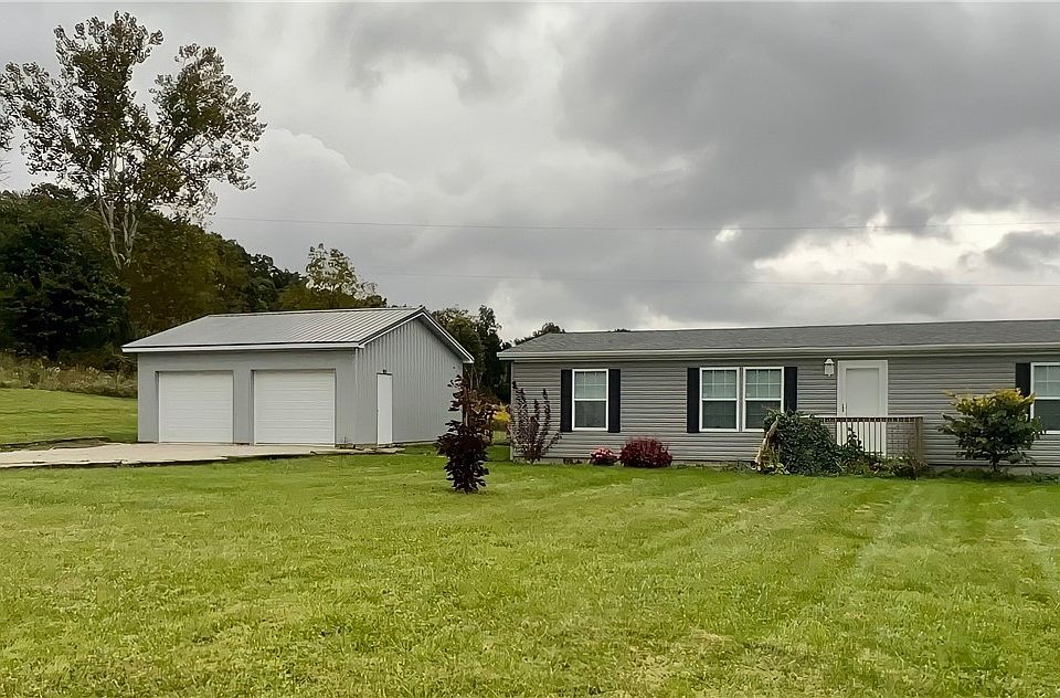 Move In Ready this 2019 manufactured home is ready for you. Located on 2.75 acres this 3 bed, 2 full bath, w/bonus washroom/laundry area provides over 1300 sq. ft. of living space. The home offers an open concept while still offering plenty of storage space. The 2019 detached 2 car garage with concrete floor & automatic doors has bonus space to allow for workbenches or room to store the lawn care equipment and bikes. Back deck is the perfect spot for a cookout or just to enjoy a quiet evening! Septic, water tap, kitchen appliances, a/c unit - all new in 2019!!