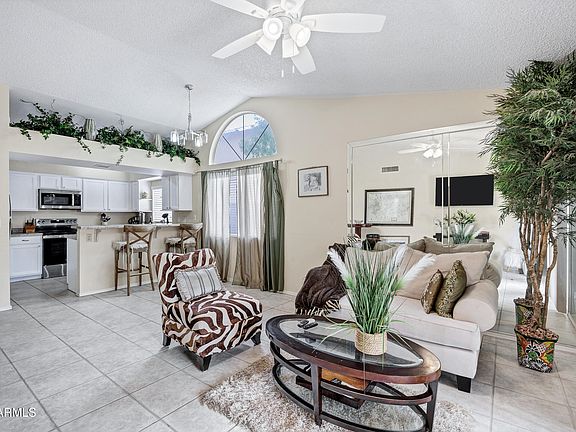 Single level home in the heart of Ahwatukee! Full HVAC system and roof replaced in October 2025! Interior painted throughout including ceilings, doors, trim and garage in October 2025. Pool size back yard! 3 bedrooms and two bathrooms. Open kitchen - family room floor plan! Kitchen boasts trendy white cabinetry with brushed nickel hardware, cabinet pantry, breakfast bar, 2025 stainless steel refrigerator and range, newer stainless steel dishwasher, microwave and counter tops. Soaring vaulted ceilings throughout including the bedrooms! 2025 Arcadia sliding glass door from the family room to the extended covered back patio. Back patio posts replaced 2025. Dining area light fixture and ceiling fans in the family room and primary suite replaced in 2025. New supply lines at the primary bathroom sinks. Primary suite has a walk in closet, dual sinks in the bathroom and its own exit to the back yard. Tile flooring throughout the home with carpet only in the bedrooms! Low maintenance desert landscape and hardscape in the front and back yards. Close to shopping, restaurants, golf, hiking, and schools! All facts and figures to be verified by the buyer or buyer's representative.