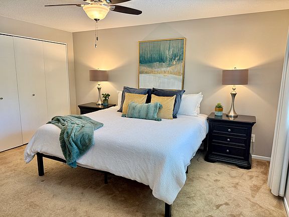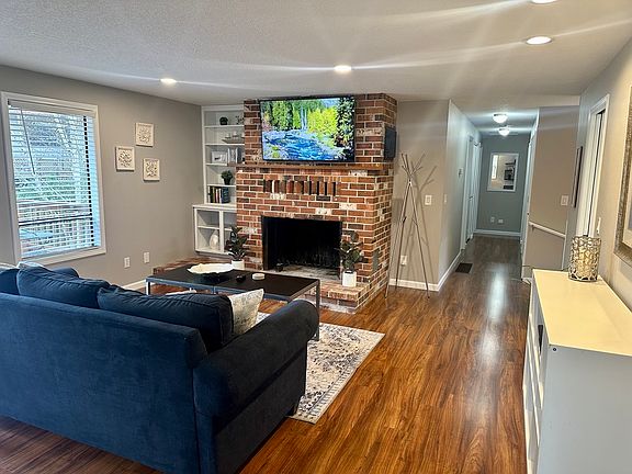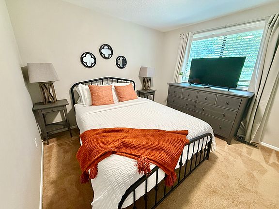Spend your time in this storybook backyard that sits on a quiet cul-de-sac by a lake, away from busy streets and yet is close to everything. Fresh paint all throughout the home welcomes you to relax and either kick your feet up by the fireplace and watch something on the smart TV, browse the internet on the high-speed wifi at the designated workspace, or enjoy cooking up something fresh in the large, newly updated kitchen with brand new appliances and countertops. (Lots of pantry space too!)