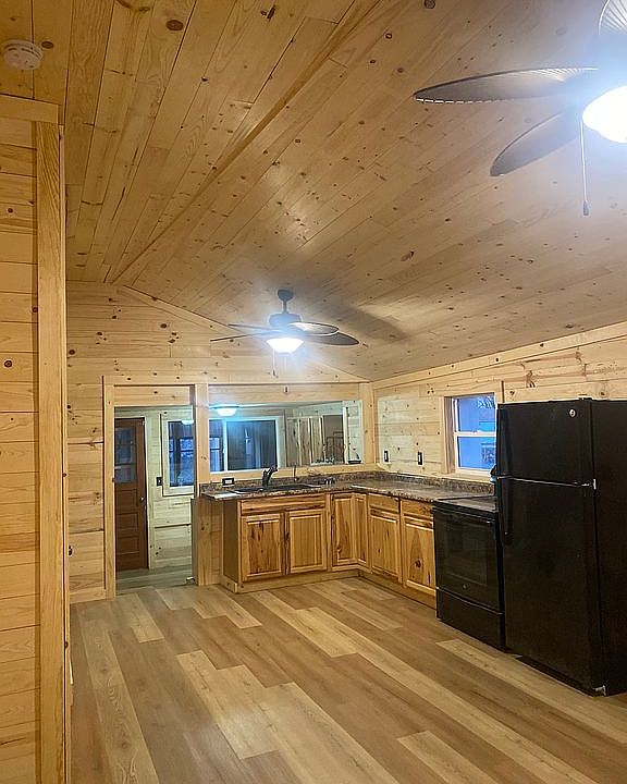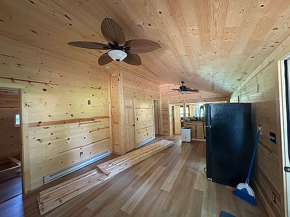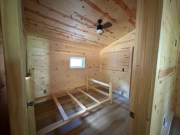 Recently remodeled cabin in 2023-now. Metal roof put on in 2019. All new, real, Select Knotty Pine interior with scratch resistant vinyl flooring. Entire bathroom interior has been water proofed with clear polyurethane. All interior is fresh pine wood for new home owners to stain as they wish. Flooring brand name is Lyra, has its own underlayment pad but I put in an additional underlayment pad so it’s quiet and soft when you walk. I had the interior walls insulated to further sound proof the bedrooms. Built extremely solid with cinder block walls, on 2 concrete slabs. Tons of updates. Water softener, reverse osmosis system, backup home generator, 1,000 gallon propane tank to support generac home generator to have power during power outages. Comes with 2 sheds, 1 shed with power and second story for storage. Back patio/enclosed porch with power. Big fire pit. Fenced in back yard. Dock with pond access for when the lakes close to public fishing. Public lake access minutes away. Custome made log bed frame staying with cabin. Comes with some tools and a push mower. Perfect first time home for anyone who loves the outdoors, fishing, or hunting.