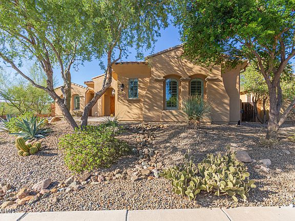 Discover refined living in this exquisite TW Lewis single-level luxury home nestled in the prestigious gated enclave of Mira Vista within Vistancia. Boasting soaring 10' ceilings, a gourmet chef's kitchen with sleek refaced cabinetry, gas cooktop, expansive island, and charming bay-windowed dining, this open-concept design flows into a stylish great room with custom entertainment wall and included TV. Designer upgrades include tall baseboards, plantation shutters, surround sound, custom master closet, and a whole-house backup generator. The lush backyard oasis features travertine decking, covered patio, and built-in BBQ island. Situated on a premium cul-de-sac lot just steps from the scenic Discovery Trail, with quick access to top-tier shopping, dining, and freeways. Vistancia is Peoria's premier community, loaded with amenities such as a Rec Center, Community Pools, Walking Trails, Various Clubs & Activities. This home is in a Great Location within Vistancia, within walking distance to grocery stores, and restaurants, short and easy Freeway access, minutes from TSMC.