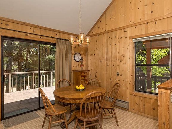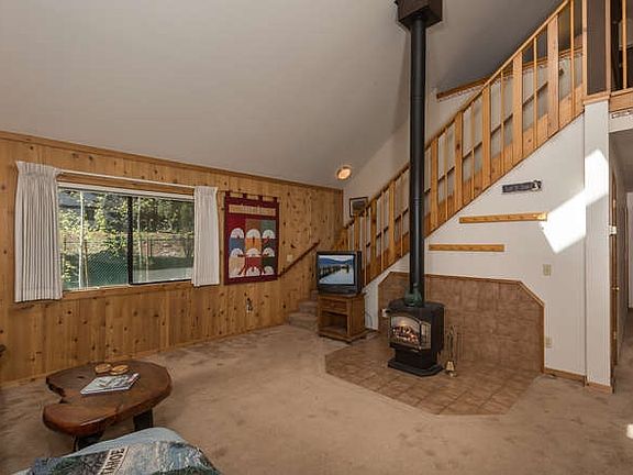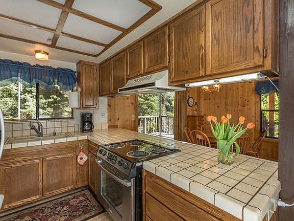 Cabin living at its best! Retro with today's comfort. Enjoy the large deck, the fenced in yard, the pretty garden, the additional shed... and there's more. High, partially wooded walls and ceiling. Plenty of windows, skylights, loft. Gas stove and electric heat. Fully functional one level living. New Stove and Dishwasher in the kitchen. Separate laundry room with door to the outside deck. Dogs and people will love it here! Close to hiking, biking and boating.... Attached garage is spacious and finished.