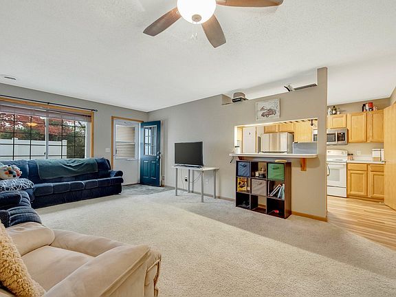 Charming move-in ready townhome in the heart of Coon Rapids! Nestled in one of the best spots in the neighborhood on a private, quiet dead-end street, this townhome offers tranquil views of a nature area and pond right across the street, with no neighbors in sight. The upper level features two spacious bedrooms, a full bath, and convenient full-size laundry. On the main level, you'll find a bright living room, a dining area, a modern kitchen with plenty of cabinet space and a breakfast bar, plus a cozy outdoor patio area. The neighborhood has its own park and ball field just a minute's walk from your front door, making it perfect for families. Everything you need is close by, with shopping, restaurants, golf courses, bike paths, walking trails, gyms, and easy freeway access all within reach. Recent upgrades include newer LVP flooring in the kitchen/baths, stainless refrigerator, and newer washer/dryer. Great opportunity for a cash-flowing investment property or the perfect first home!