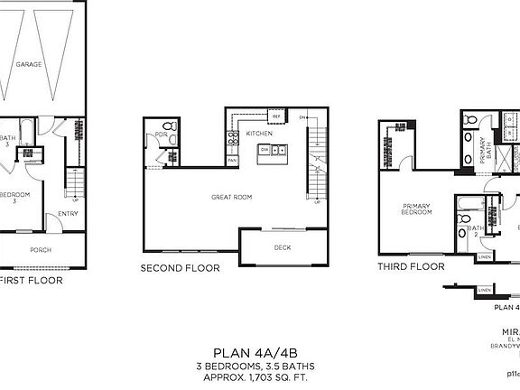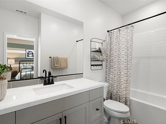 Welcome to this stunning modern tri-level home in the GATED Mirasol community! This brand-new, energy-efficient Plan 4 offers 3 bedrooms (one bedroom on the 1st floor), 3.5 bathrooms, and 1,703 square feet of thoughtfully designed living space, complete with an attached 2-car side by side garage. Upon entering, you're welcomed by a bright foyer with a convenient storage closet, 1 bedroom and 1 full bath downstairs and direct garage access. As you ascend to the main level, you'll discover an open-concept living area featuring a charming balcony, perfect for entertaining or relaxing in the fresh air. The beautifully appointed kitchen boasts white shaker cabinets, a large island with quartz countertop, and LG stainless steel appliances, including a range, microwave, and dishwasher.