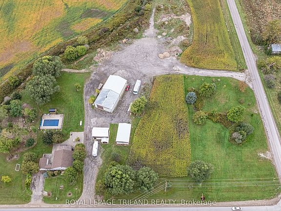 Welcome to 12249 Mill Rd, Southwold Featuring a Massive 40x80 Heated Shop with Three Large bay doors! Set on 6.31 acres and zoned R1-12, this exceptional property offers endless potential for business, recreation, or hobby farming. Whether you're a contractor, truck operator, or someone who needs serious storage and workspace, this property delivers! The impressive 40x80 heated shop is equipped with three oversized bay doors and seven outdoor hydro plugs perfect for winter vehicle plug-ins or RVs. A second laneway at the rear provides direct, private access to the shop, keeping it conveniently separated from the main home. A second detached shop and a barn with stalls offer even more space for storage or small-scale farming. The 3-bedroom, family home offers both comfort and functionality, complete with an attached garage and brand-new furnace. Enjoy summer days in the inground pool ,freshly updated with a new liner for 2024, or unwind on the large rear deck under the covered awning, perfect for morning coffees or evening sunsets. Pet lovers will appreciate the pet-safe in-ground fencing surrounding the perimeter, allowing dogs to roam freely and safely. Located just 5 minutes to the Shedden overpass and 10 minutes to 401/402 access via Colonel Talbot Rd, you're ideally positioned between London and St. Thomas only 20 minutes to either city. This is more than just a home; its a lifestyle property with room to grow, work, and play. Schedule your private showing today and explore all the possibilities this rare Southwold offering provides!