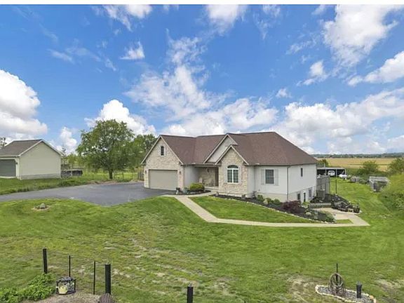 Welcome to this custom built ranch home on +/- 2.7 acres in Bloom Carroll school district. The main level features 3 bedrooms and 2 bathrooms. The open layout is perfect for family living or entertaining guests with a kitchen that has an island with seating and a chef's 5 burner propane range. Downstairs in the walk out basement is an additional bedroom, full bath and office along with a complete kitchen and recreation area making it ideal for multigenerational living or guest quarters. For those who need extra space for work or play the detached partially insulated and heated barn offers 6 car bays, a lean-to with 5 bays that would be easy to finish into additional interior space. Out back you will find a greenhouse for year round growing and there is a garden to grow fresh produce if you so choose.