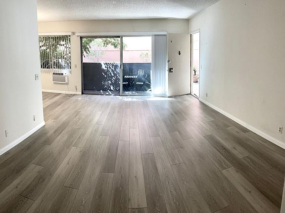 Large gorgeous unit on ground floor with luxury vinyl wood like plank floors throughout with luxury upgraded carpet in bedrooms. Kitchen includes a refrigerator (unwarranted) an electric stove top, single oven and double sink with disposal and has a huge walk-in pantry room. The bedrooms are large and each have mirrored sliding closet doors and AC. Living room has AC, a large walk-in closet ( great for luggage and larger items) and a large expansive slider leading out to gorgeous patio with lush garden. Great apartment for the price. Immaculate and well cared for boutique building with intercom and gated access. Laundry area is onsite and communal. There is (1) designated parking space but street prkg is good. Family managed. Quiet Bldg and lush gardens everywhere. Must see. No pets or smoking of any kind. Must have excellent credit