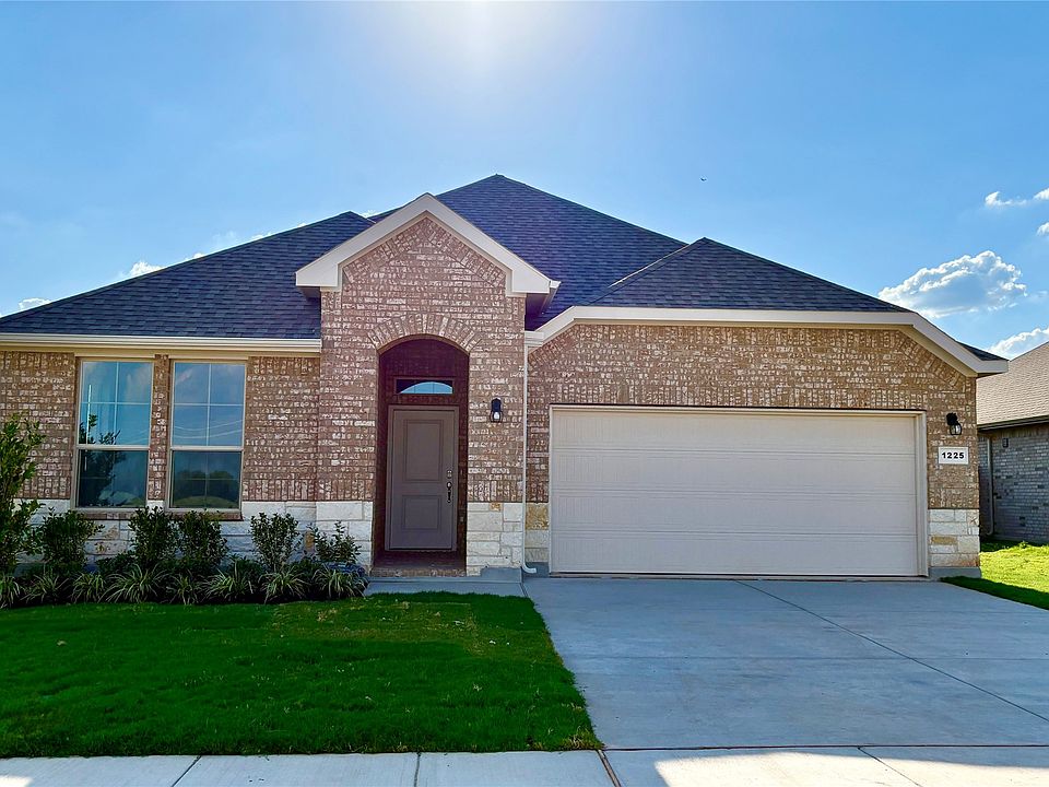 Now selling in the new phase of D.R. Horton's master planned community Bella Vista in Granbury and Granbury ISD! LOW TAX RATE, NO MUD and NO PID! Gorgeous new open concept single story 5 bedroom, Las Cruces Floorplan-Elevation F with an estimated late Fall completion. Large gourmet kitchen with island, quartz countertops, pendant lights, stainless steel appliances, electric range and tiled back splash opening to both the dining and spacious living at the heart of the home. Luxurious primary bedroom with dual sink quartz top vanity, large walk-in shower with seat, linen closet and walk-in closet. Secondary baths also have quartz top vanity. Covered back patio, partial guttering, 6 foot fenced backyard, landscape package with full sod and sprinkler system. Designer package including extended tiled entry, halls and wet areas plus home is Connected Smart Home Technology. Front coach lights, high-efficiency SEER HVAC System, electric tank water heater, and more!
