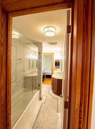 Stylish and Inviting Renovated 1-Bedroom in the Historic French Quarter Beautifully renovated and fully furnished. 1-bedroom, 1-bath rental on the second floor offers historic charm with modern comforts. Step into a warm and inviting living space featuring natural wood accents, exposed beams, and abundant natural light throughout. The spacious kitchen includes a convenient peninsula for dining and entertaining, while the luxurious marble-accented bathroom is thoughtfully designed with dual access from both the living area and the bedroom. The large bedroom includes a comfortable queen-size bed and a custom closet. A neutral color palette enhances the cozy, sophisticated atmosphere. On-site coined laundry available.