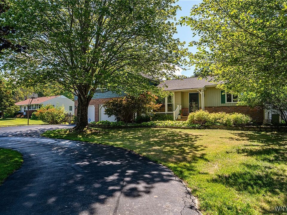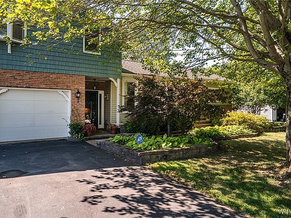 Tastefully decorated throughout, this three bedroom, two bathroom home is set on a 2.5 acres of wooded land and offers comfortable living with tons of privacy. The first floor has a living room, two bedrooms, full bath and a large kitchen with plenty of white cabinets and Corian counters with an adjacent dining area. The rest of the first floor includes a beautiful and bright family room with hardwood floors, a cathedral ceiling and a wall of windows overlooking the rear yard. There is a sliding door from the family room directly to the yard. Upstairs, there is a huge primary bedroom, a small room (used as a walk in closet) and another full bathroom with a stall shower. The attached garage offers additional storage as does the full basement. Outside, there is an awning-covered patio, lovely perennial gardens, a heated inground pool and an extremely large yard with plenty of green space and a wooden playset.