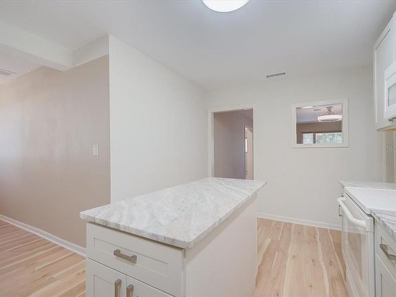 Renovated Triplex close to the Central Cocoanut Historic District and downtown Sarasota! This 2-bedroom unit is a spacious with 1 bathroom and a rear screened patio. The large living room features a decorative fireplace, a large picture window, and modern lighting. A new modern kitchen with stone countertops, custom cabinetry, matching appliances, and an island with lots of storage makes cooking and entertaining easy. There are two large bedrooms with ample closet space and a bath with dual sinks, solid surface countertops, walk-in shower, and built-in storage. This unit has its own carport and a private laundry/utility room with included washer/dryer and extra sink. Other features include upgraded lighting, ceiling fans, vinyl flooring, hurricane impact windows and wood blinds. Don't miss this opportunity to live near all that Sarasota has to offer with a 5-minute walk to downtown and short drive to St. Armand's Circle, Lido Beach and tons of restaurants, shopping and entertainment. Water/sewer, pest control, trash collection and grounds maintenance is include in rent. One adult dog under 60 lbs is permitted with a refundable $300 pet deposit. No aggressive breed dogs allowed. No puppies allowed. Security deposit is $2000. First, last and security required for move in. Available for move in 10/1/25