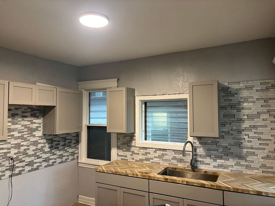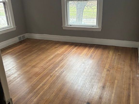 Freshly painted hardwood floors throughout the house, updated kitchen and bathroom