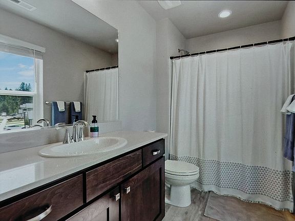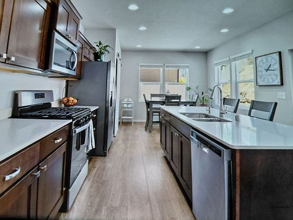 Built in 2021, this quiet corner-lot home in the Mead School District features an open concept main floor with quartz countertops, stainless steel appliances (refrigerator, gas range, microwave oven, and dishwasher), and powder bath. Upstairs offers a primary suite with dual vanities, walk-in shower, and walk-in closet, along with two additional bedrooms and another full bath. Also, conveniently located upstairs is a laundry room with washer and dryer included. The yard is fully landscaped and has an automatic sprinkler system. The two-car garage access is efficiently located off the main entry hall and provides adequate storage space. Yard maintenance and HOA fees provided by homeowner. Pets welcome upon condition.