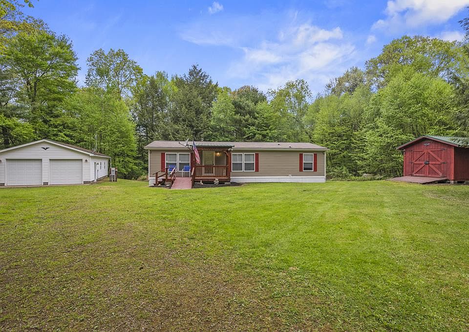 Escape to country living with this well-maintained 2014 mobile home, perfectly positioned on 3.02 serene acres. This 3-bedroom, 2-bath home features an open floor plan that offers a spacious and inviting living area. Step outside onto a newly built deck, perfect for enjoying your morning coffee or hosting summer gatherings. The property also includes two storage sheds for all your tools and gear, and a massive 24x35 insulated oversized garage with electric. Whether you're seeking a weekend getaway, or a property with room to grow, this one checks all the boxes. Don't miss this unique opportunity to enjoy comfort, space, and functionality all in one beautiful rural setting.