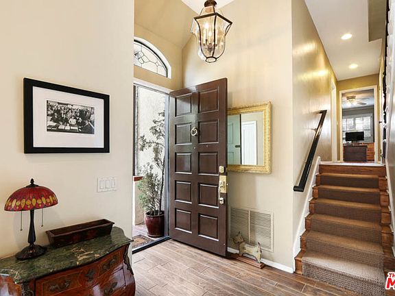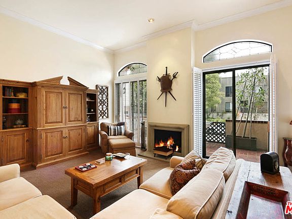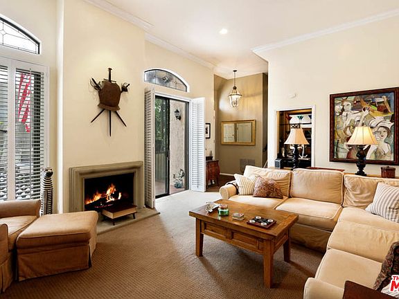 This two bedroom, two and a half bath Country English townhome is ideally located, just minutes from the Wilshire Corridor, Westwood Village & Beverly Hills. Enter this immaculate 3-story townhome w/its own private garage where you'll find comfort & sophistication. Enter the formal living room featuring a fireplace, wet bar, soaring ceilings, plantation shutters & dark hardwd floors. A spacious kitchen opens to the dining room w/a fireplace. Upstairs, find the master suite, the second bedroom, bathroom & the laundry area. The mstr suite has high ceilings w/hefty wooden beams, a fireplace, large windows and an oversized his-and-hers walk in closets. The second bedroom has a sizable walk in closet and an attached bathroom. Head downstairs to access your private over-sized two-car garage, which features a workshop area & storage space. This irresistible townhome is the recipe for comfort: ideally located in a great neighborhood, convenient and spacious.