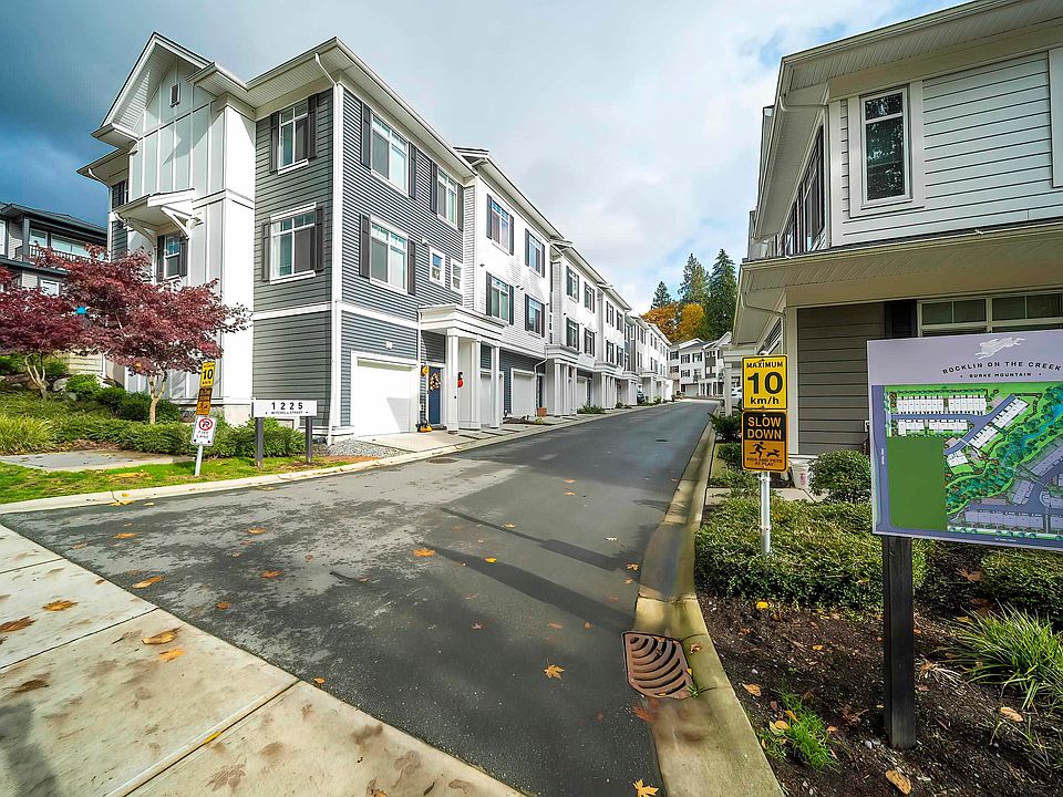 Welcome to Rocklin on the Creek by reputable Woodbridge in sought-after Burke Mountain. This stunning 3 bed + 3 bath townhome offers a bright open layout with 9-ft ceilings, large windows, and stylish contemporary finishes throughout. The chef-inspired kitchen features quartz counters, gas range, and generous island perfect for entertaining. Upstairs boasts spacious bedrooms and a serene primary suite. Enjoy morning coffee on your private patio or relax in your fenced yard surrounded by lush greenery. A tandem garage provides plenty of parking and storage space. Steps to parks, trails, schools and shopping, and future Burke Mountain community center -- this the perfect place to call home.