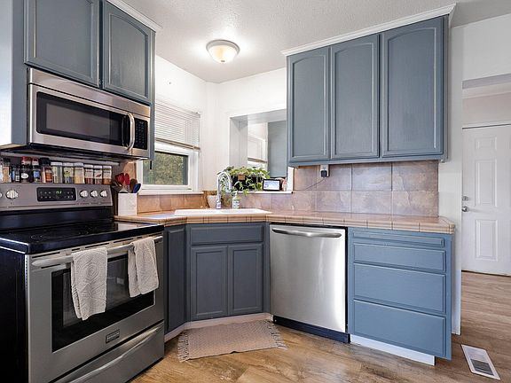 This conveniently located home in Shasta Lake is a must-see! It features a beautifully remodeled kitchen with stainless steel appliances and tiled countertops, perfect for any home chef. The downstairs boasts stunning new vinyl plank flooring, while central air conditioning keeps you cool in the summer, and forced air heat ensures comfort in the winter. The home offers 2 bedrooms and 1 bath downstairs, with 2 additional bedrooms upstairs. The inside laundry room comes with a pantry for extra storage. The living room is spacious and inviting, ideal for relaxing or entertaining. Step outside to enjoy a full-length covered patio, with an extended area perfect for a hot tub. The yard is fully fenced, providing privacy, and there's room for RV parking. You'll also appreciate the above-ground pool for those hot summer days and the upgraded vinyl dual-pane windows for added energy efficiency. Plus, there's a metal outbuilding for extra storage. This Shasta Lake gem has everything you need for comfortable living!