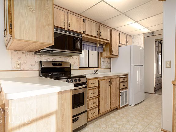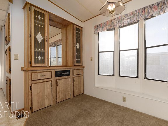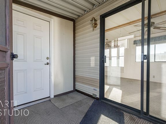 Dixie Downs is the ultimate 55+ community! This park model is lovingly kept up. The addition of the den/bedroom and laundry room make it very spacious. Roof is only 2 years old and the power pedestal is 3 years old. This unit includes solar shades to keep it cool. Washer, dryer and refrigerator are all included. There is an ample storage shed that is wired with power and light in the back. The low HOA fee of $85 p/m give you access to pool, hot tub, clubhouse and more. The community is very active with many activities throughout the year. A perfect place to spend your retirement years!