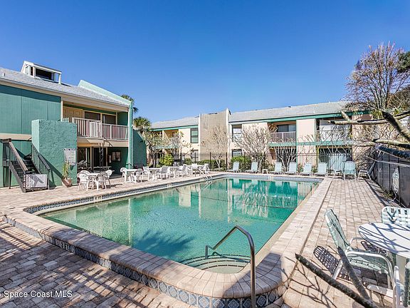 Welcome Home, this beautiful condo is move in ready, on the 1st floor, and is one of the best priced homes in Brevard county. Enjoy pool and courtyard views while sitting on your covered back porch. The courtyard area has many mature and beautiful trees. The home has several updates including new windows in 2000,accordion easy close hurricane shutters installed 2021, Water Heater 2023, AC/Heat 2015, new electric panel 2019, and window treatments 2024. The Association includes exterior maintenance including the roof, lawn care, pest control, pool maintenance, internet, cable TV, and More. The best part is you are approximately 15 minutes to the beach and approximately 10 minutes to the River. There are also tons of shopping and dining options within minutes.