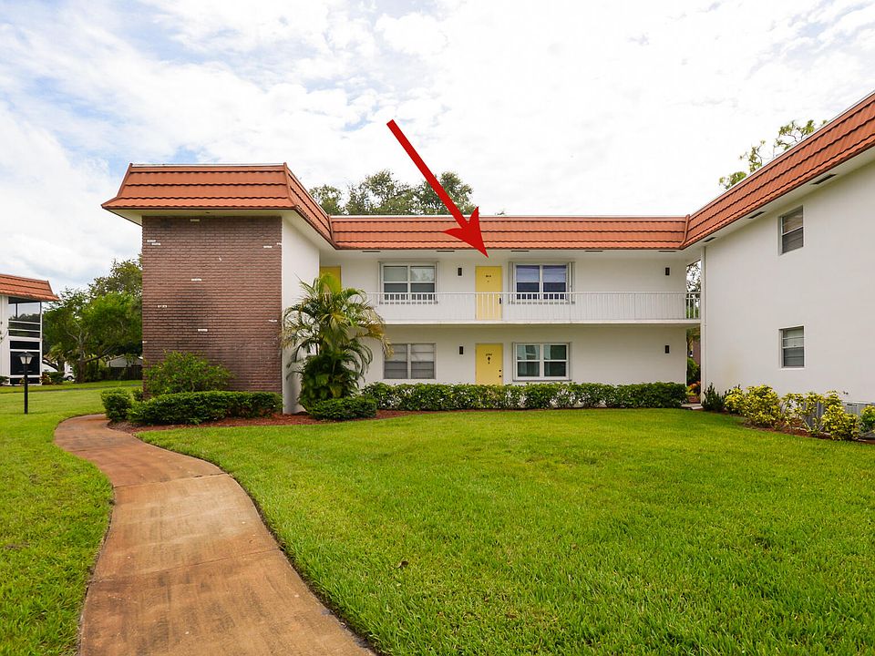 Charming furnished 2/2 second floor condo, in Vista Del Lago, a 55+ community in Stuart Florida. Open living/dining room leads to kitchen with solid surface countertops and tile backsplash. Laminate flooring in living and dining room, soft carpet in bedrooms. Both bedrooms with sliders to covered enclosed balcony that offers an additional large storage room. Accordion shutters for window and slider protection. Vista Del Lago features a clubhouse, pool, billiards, exercise room, shuffleboard, walking paths, library, and more!