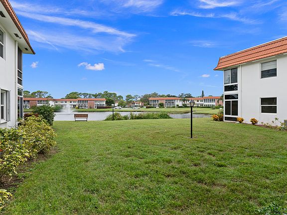Welcome to this beautifully renovated ground floor, 1-bedroom, 1.5-bath home, featuring CBS construction and all impact windows and doors for peace of mind. Step inside to discover luxury vinyl flooring throughout, complemented by 4-inch baseboards. The stunning new kitchen boasts stainless steel appliances and quartz countertops, perfect for culinary enthusiasts. Both bathrooms have been tastefully updated, ensuring modern comfort. A glassed-in lanai offers a perfect spot to relax and enjoy the tranquil surroundings. With a new AC unit installed in 2023 and a water heater replaced in 2019, you'll enjoy worry-free living. The property features a serene pond view and is situated at a high elevation within a wonderful 55+ community that includes fantastic amenities--all for a low HOA fee.