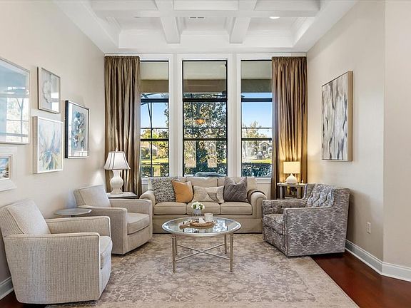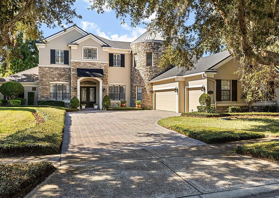 Welcome to this beautifully appointed executive residence in the gated community of Ellington Estates. Immaculately maintained and located on a quiet cul-de-sac, this custom home offers the perfect blend of luxury, convenience, and lifestyle, complete with a new roof and a fenced yard with a dedicated dog run. As you enter, you are greeted by a formal living room with spectacular views of the pool, waterfall feature, and pond. The elegant dining room leads into the open kitchen, which overlooks the spacious family room and transitions seamlessly to the massive lanai and oversized saltwater pool. This is an ideal layout for both everyday living and large scale entertaining. The primary suite on the main floor includes a spacious walk-in closet and a spa like bath with a walk-in shower. A private guest/in-law suite is thoughtfully positioned on the opposite side of the home for maximum privacy. Additional first floor highlights include an office/study, a wet bar with a wine refrigerator, and wood flooring throughout. Upstairs features two dedicated bonus rooms, three additional bedrooms, and a convenient laundry chute. The laundry room includes a walk-in storage closet and a mudroom with a backpack drop zone, providing exceptional organization and functionality. High end finishes are found throughout, including custom cabinetry, stone countertops, extensive crown molding, and custom window treatments. The oversized 3-car garage offers ample storage, including a hidden room perfect for seasonal items or hobby equipment. Ideally located in the heart of Oviedo, this home offers quick access to top-rated Seminole County schools, SR 417 and 408, UCF, shopping, dining, parks, trails, and a wide range of thriving city amenities. This exceptional home truly delivers the perfect combination of luxury, location, and lifestyle.