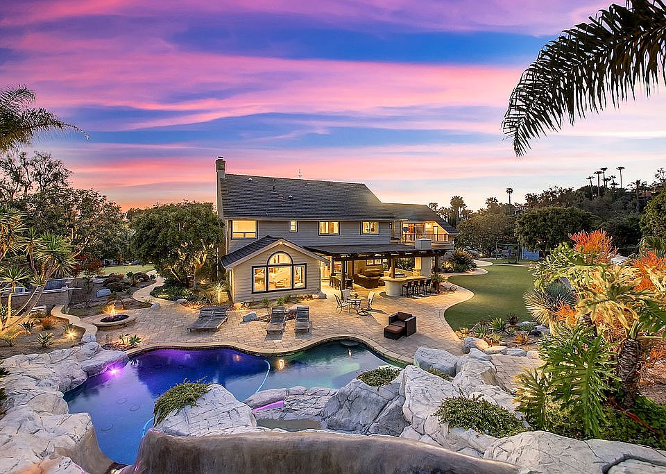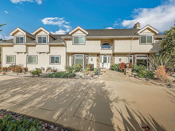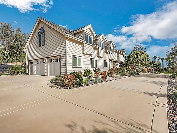 This charming Olivenhain Colony Estate is an entertainer's paradise. With gated entry and circular driveway, this 1.01-acre residence exudes curb appeal with mature trees and a water-conscious landscape. Come and view the grounds amenities which include a resort-style pool with waterfall and spa, fire pit, massive covered patio with outdoor fireplace & BBQ, enclosed garden beds, sports court, Trex tree house, expansive lawn area, quality playground & rock climbing wall, paid for solar farm, putting green and so much more. Get ready to say wow! Natural light abounds throughout this 4 bedroom home with a professional office, formal dining and living rooms, large bonus room over the garage, family room, and double door entry to patio area. All bedrooms are spacious and located upstairs along with three nicely updated full bathrooms. The kitchen has a large center island, 6-burner gas stove, sub-zero refrigerator, cherry cabinets, and walk-in pantry. Additional features include numerous entertaining areas, a 3 car garage, tankless water heaters, commercial-grade internet and wifi network, electric car charging station, and ample built-in storage throughout the home. Walking distance to countless trails and paths. Short distance to school, shopping, and entertainment.