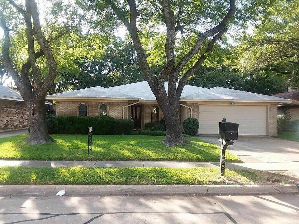 In the heart of the Dallas-Ft Worth area, this house is ready for a Buyer to call it home. New interior paint (no popcorn ceilings!) and flooring. Second Bath has been Updated! The dining area has a bay window and opens to a spacious living room that has a fireplace. 4th BR can be used as a Study. Windows were replaced with the Low-e Vinyl windows in 2010. Enjoy the relaxing atmosphere of the spacious backyard with mature trees. Master BR has walk-in closet. Spacious custom built Storage Building. Retail nearby. Access to four major commuter roadways. Separate storage and work bench in the Garage. Video Security System conveys with the property.