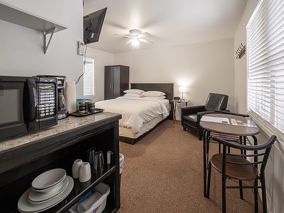 This is a Motel and we rent out rooms from October 20, 2025 until April 30, 2026, during our slower time of the year. No smoking or pets in the room, you can smoke 30 feet away from the building. You will need to have your own linens, towels, wash cloths & personal necessities. There is a Microwave and a mini fridge, hot plate and toaster oven in the room. WiFi and Roku TV and all utilities are included. Washer and Dryer available in our guest laundry room. You will need to sign a month to month lease. We will be cleaning/inspecting your room once a month for a $30.00 fee. Ask for details. First months rent and security deposit must be received before moving in.