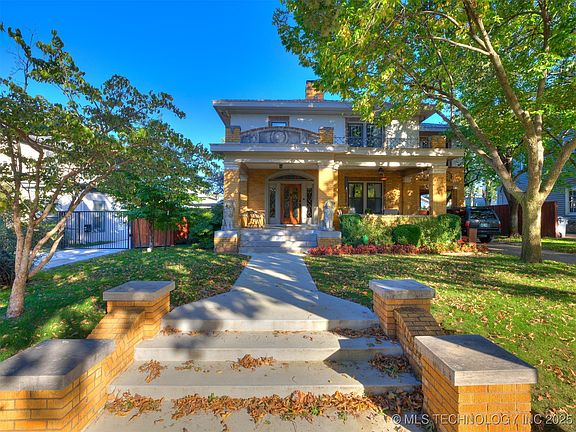 Nestled in the highly sought-after Tracy Park, this stunning 4-bedroom, 4.5 bath home perfectly blends timeless character with modern updates. Listed on the National Register of Historic Places, it showcases meticulous renovations throughout-featuring a 2019 kitchen remodel with high-end cabinetry and appliances, fully updated baths, and hardwood floors. The primary suite offers dual closets and a luxurious steam shower. Enjoy multiple living spaces, three renovated gas fireplaces, and abundant storage. Outdoor living shines with a sparkling pool, updated decking, built-in outdoor kitchen with gas grill, professional landscaping, and a Generac whole-house generator. Two renovated garage apartments provide additional income or guest space. Conveniently located near Tulsa's best dining, parks and schools-this home is a rare Midtown gem offering history, comfort, and exceptional livability. Square footage is 2985 1st & 2nd level, apartments are 672 total, finished basement 310 sq ft.