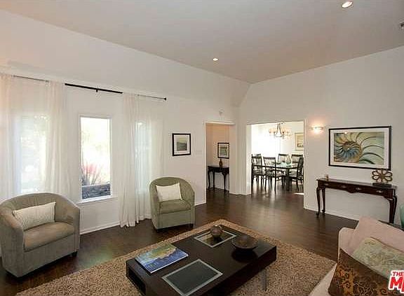 Beautifully remodeled 1927 Country English stunner, mid-block in Carthay Square. Living room with high vaulted ceiling, recessed lighting and fireplace. Large formal dining room, designer kitchen with center island, granite counters and stainless steel appliances, terrific baths with stone floors and granite countertops, sensational master with step down sitting room and two-sided fireplace. Private, grassy back yard with two car garage and bonus room, central heat & air, new hardwood floors, many systems updates, terrific daylight throughout. Square footage greater than reflected on Public Records. Buyer to verify.