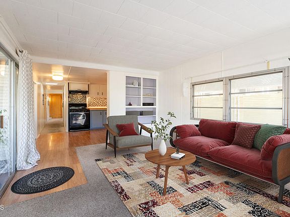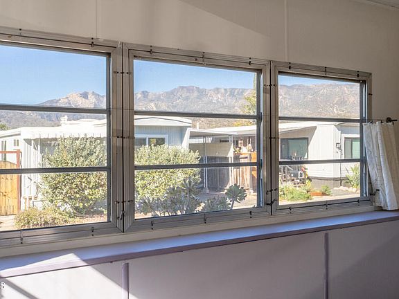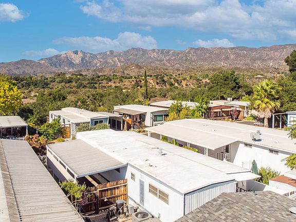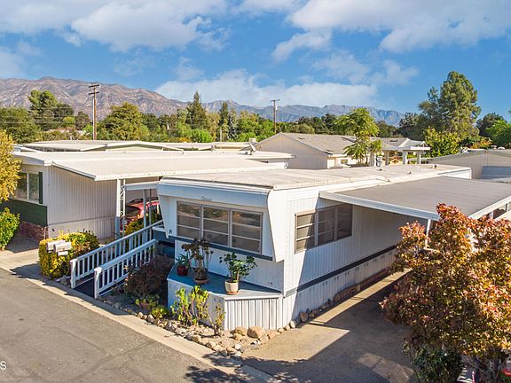 Nestled in the scenic El Sereno 55+ park, this mobile home boasts stunning views from its back-row location. The two-bedroom residence features a spacious, updated bathroom with custom tile surround and a barn door entry. Revel in the comfort of vinyl plank and carpet flooring throughout, while the primary bedroom showcases ample closets and a stylish barn door entry. The guest bedroom, complete with built-ins, doubles perfectly as an office.Enjoy the additional 268sq ft of living space provided by two room additions. The kitchen has been gorgeously renovated with beautiful finishes. Relax on the front porch, ideal for unwinding, and appreciate the convenience of the ramp at the entrance. The fully fenced backyard includes a storage shed and a private area for entertaining.Within the community, take advantage of park amenities such as the pool and clubhouse. The Ojai trolley stop and bus stop conveniently border the exterior of the park, enhancing accessibility. Embrace a comfortable and scenic lifestyle in this well maintained 55+ mobile home.