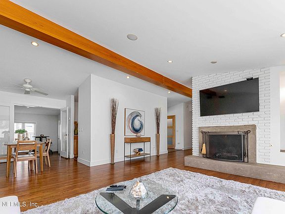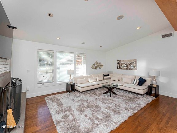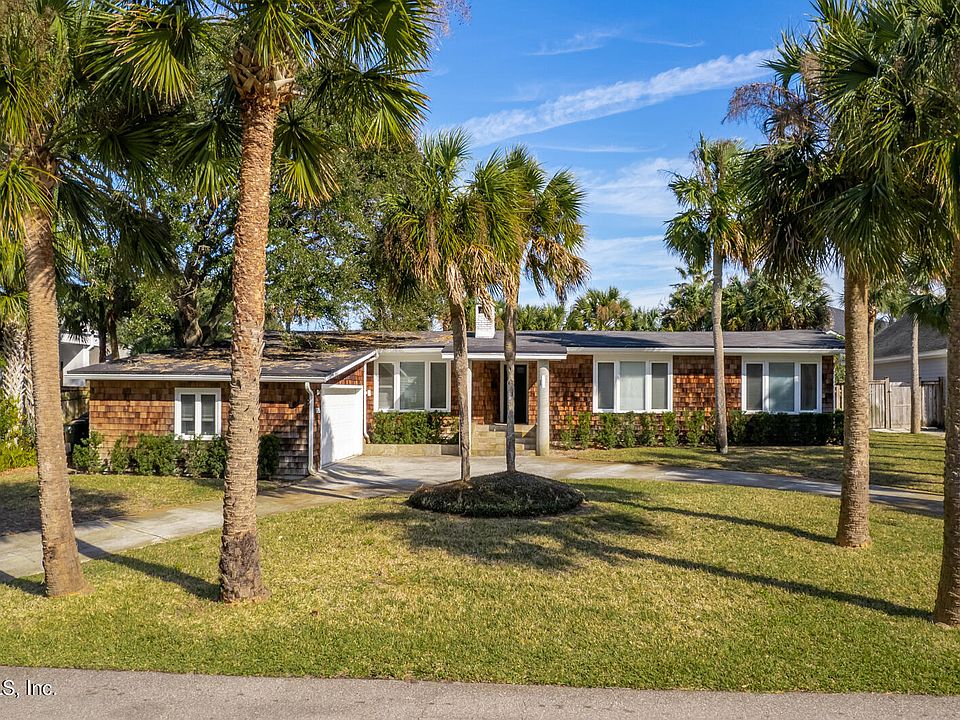 Extremely rare opportunity to live on one of the most sought-after streets in Atlantic Beach, just two blocks to the ocean, a half mile to ABCC, and a mile to the Beaches Town Center where you can enjoy shopping, dining, and entertainment. This classic beach bungalow is positioned high on an oversized lot (102' x 147') and has been tastefully updated to provide all the creature comforts of modern living. The ranch style concrete block home with cedar shake cladding has four bedrooms with three bathrooms and features smooth ceilings, hardwood and tile floors throughout, wood burning fireplace, an open floor plan designed to enjoy the pool and outdoor living space, circular drive, 2 car garage, and a deep well for irrigation.