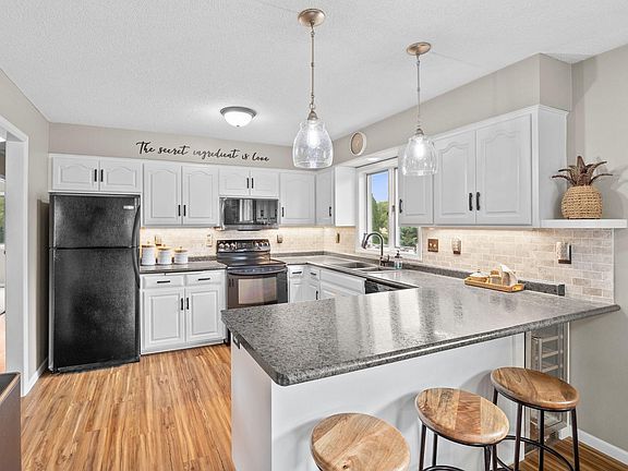 Welcome to this stunning home located on a large beautifully landscaped lot and across from a fun park! Featuring four bedrooms and two bathrooms and offering a perfect blend of modern amenities and comfort. The many amazing updates including shingles, siding, garage doors, exterior doors, kitchen, bathrooms and flooring. Enjoy the three season porch overlooking a well manicured backyard with hot tub and inviting patio. Hang out in the spacious family room with a recently added cozy fireplace. HSA Home Warranty included.