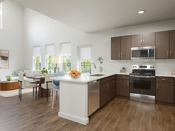 Warm midcentury-modern finishesResort-style poolCurated green spacesLake with walking trailsPrivate garages