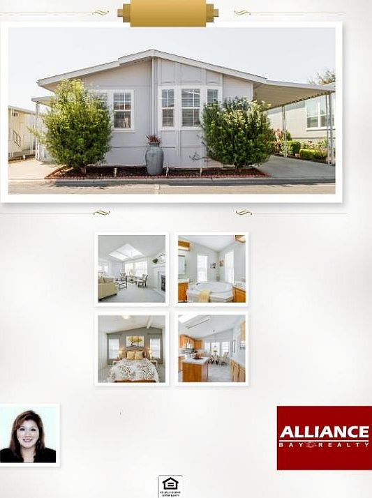 Beautiful and well maintained 3 bedroom and 2 bathrooms mobile home located in the desirable park, Plaza Del Ray. This home has a split floorplan layout and is approximately 1,560 sq ft. Perfect for family and entertaining guests! High vaulted ceilings and numerous windows throughout the home that allow lots of natural light in. The carport is able to fit up to 3 vehicles. A new water heater and air conditioner were recently installed with a 1-year HVAC warranty. Equipped with a Nest Home Security Camera System. Spacious and newly painted porch deck for BBQs. The exterior of the home was power-washed. Plaza Del Ray is an all-age park that offers amenities such as a newly renovated fitness center, sauna, swimming pool, and clubhouse. Conveniently located near numerous shopping centers, Levi Stadium, Google, and Highway 101 and 237. Don't miss your chance to view this home today!